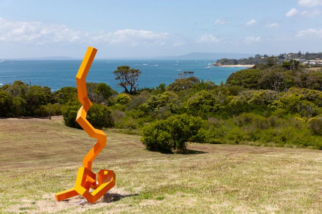 Caleb Shea’s idiosyncratic take on formalism situates him as a key figure in Australia’s neo-modernist movement. Form, colour and phenomenology are central to Shea’s practice, where transcendental geometric abstraction and blunt simplicity meet in a revision of the late-modernist sculptural tradition. Known for his distinctive visual language, Shea’s contemporary approach offers an animated, sophisticated and playful flare to the discourse. The single line form is a recurring motif that Shea continues to revisit in playful experimentations that contribute to conversations about sculpture as drawing in space. A sustained investigation into a select vocabulary of forms has defined Shea’s output in recent years, with current works challenging this language in relationship to human proportions, introducing a new monumentality in scale.
