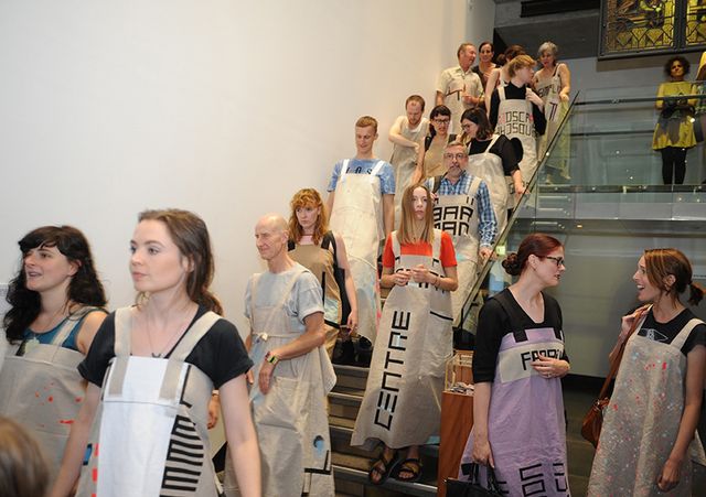 Sarah CrowEST operates across contemporary art, design, craft and performance. Underpinned by a deep appreciation for sound and architectural forms, her recent output combines painting, working apparel, diagrammatic scores and the graphic qualities of text.