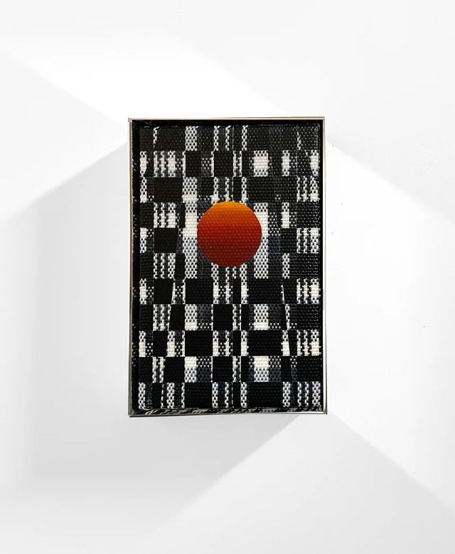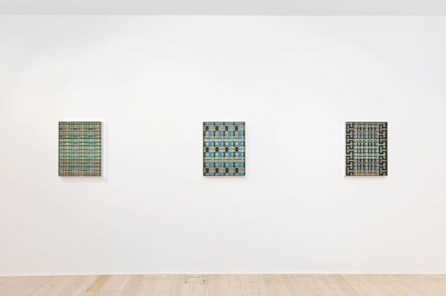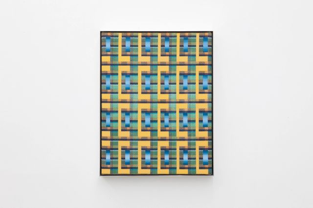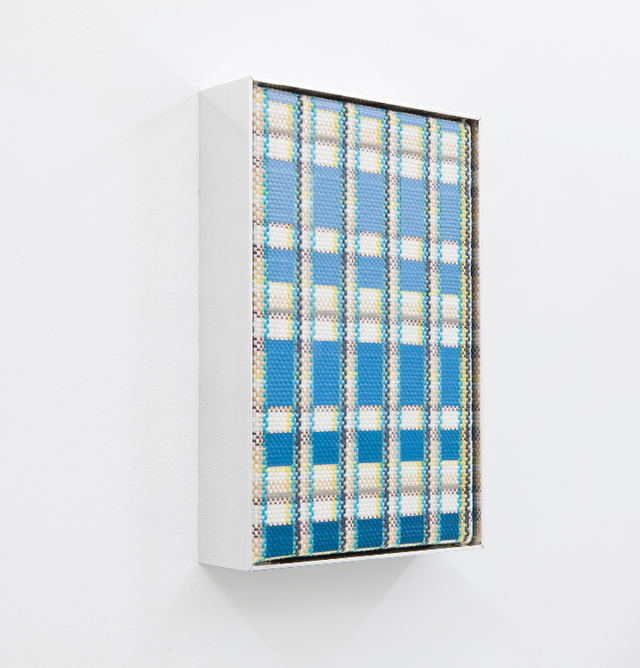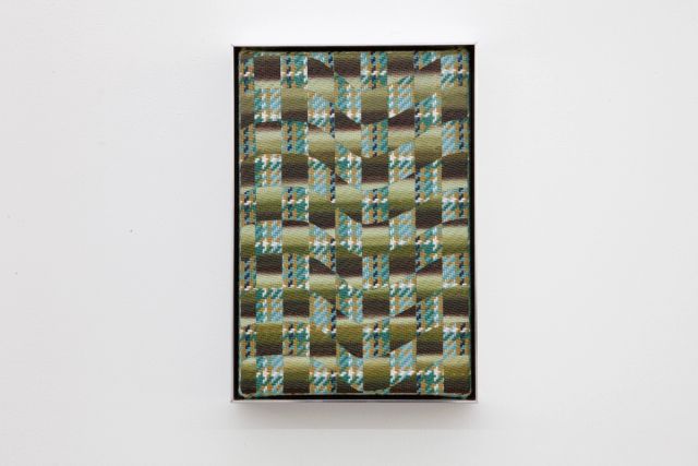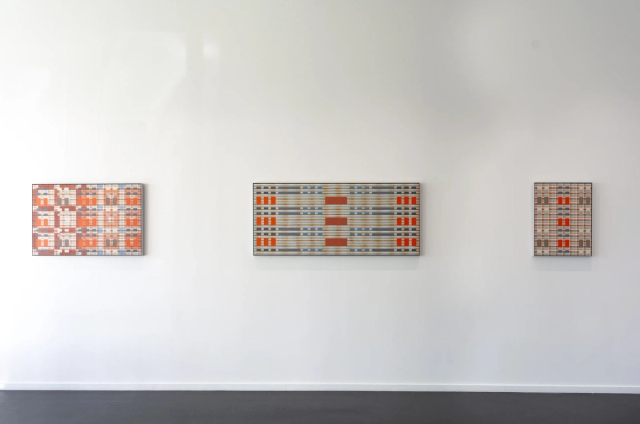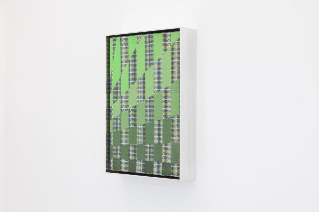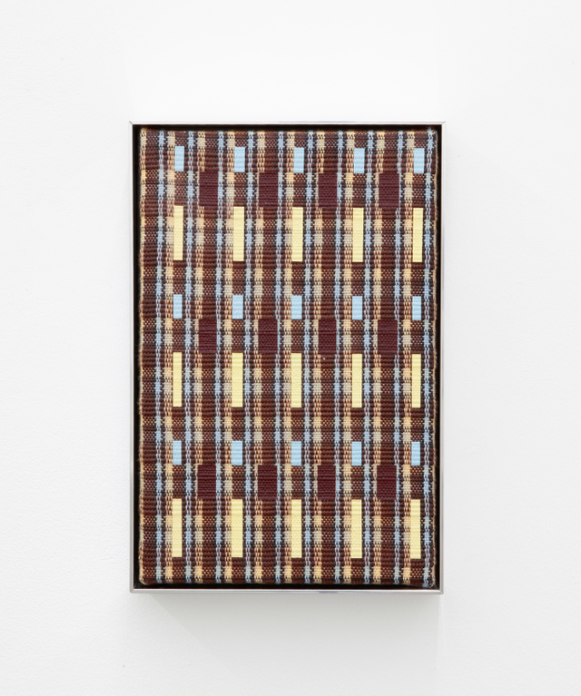 Tia Ansell’s compositions are informed by architectural facades, aerial perspectives and advertising designs sourced from sites within metropolitan Melbourne and beyond. Her production conventions emerge from her admiration of the logic (or non-logic) often employed within urban design, planning and architecture. In response, Ansell has developed a mathematical system where design elements are distilled and unified, through continuous vertical line, colour and scale. Predominantly known for her inventive ‘weaving-paintings’, Ansell is a master of her medium, whose works are woven by hand into complex compositions on her century old wooden loom.