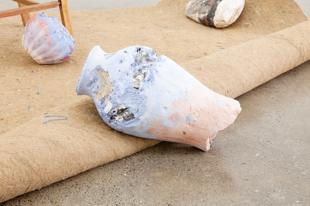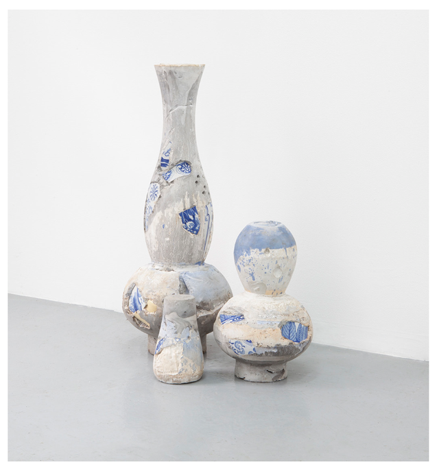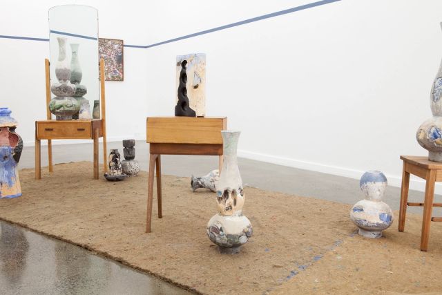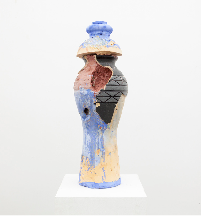 Continuing the artist’s personal archeology, burying, excavating and recontextualising narratives through symbolic and significant personal objects, Elton comprises of a series of urn like sculptures made from hydrostone cast in op-shop vases, glassware and ceramics. Informing these works are domestic motifs from the artist’s home and photographic works.