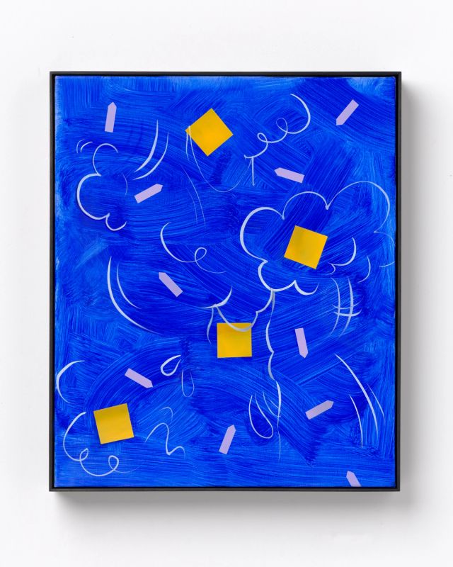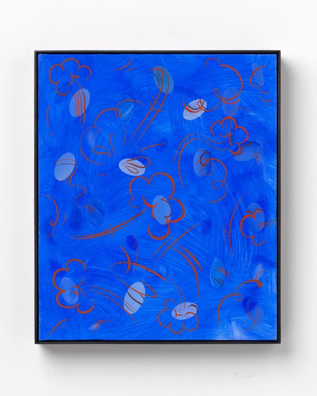 The paintings are a combination of spontaneous, abstract brushwork that is digitally modelled and run through simulations and rendering before being re-painted: bringing the original marks into contact with densely mediated versions of themselves. The spatial disorientation in the paintings reflect the privileging of appearances and rhetorical grift typical of online environments: when it is not possible to tell if something is made by a machine or human, the bad actor is both distant and ever present.