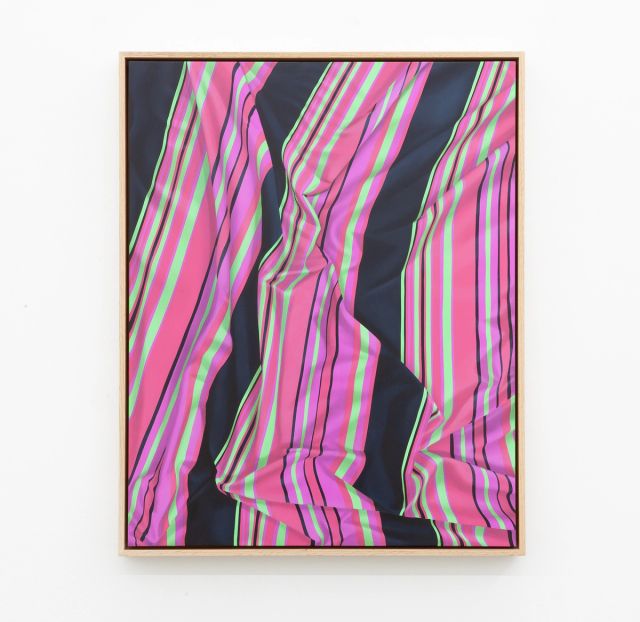 Through the roots and branches of her own familial heritage, Casey Jeffery explores the Australian suburban migrant experience and its legacy of materials. Often occupying space between figuration and abstraction, Jeffery’s paintings employ trompe l’oeil methodologies, speaking both to the history of painting, and the complex histories imbued in the fabrics she lovingly reproduces. The textiles are largely heirlooms, inherited from her Nonno, a first-generation Italian post-war migrant, who settled in Melbourne in 1951.
