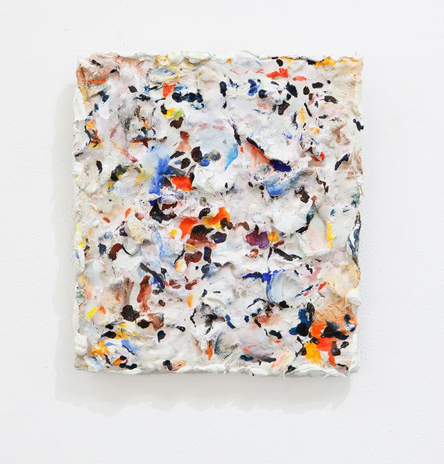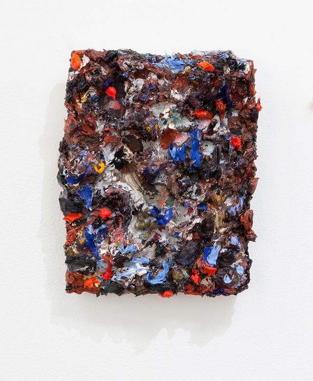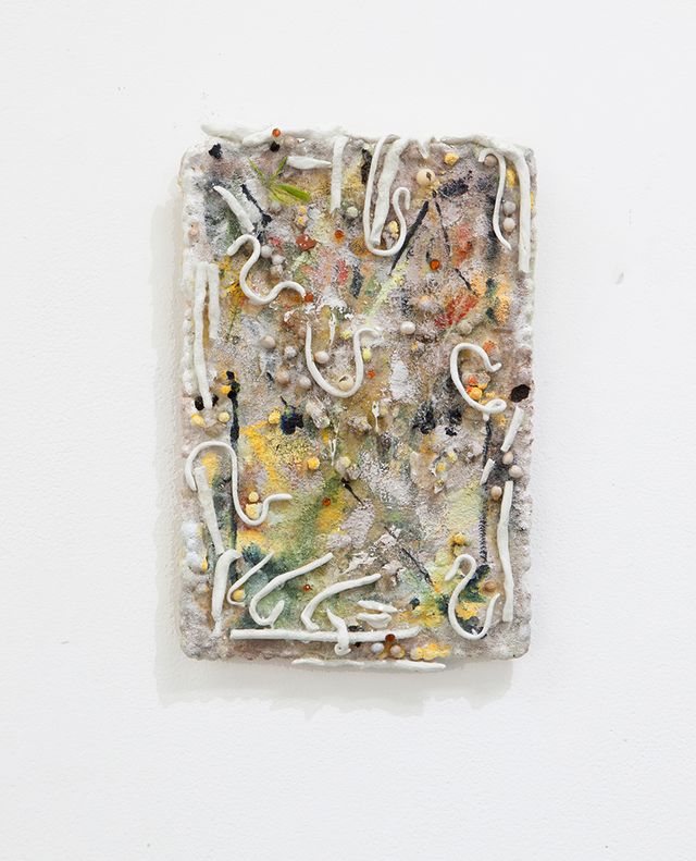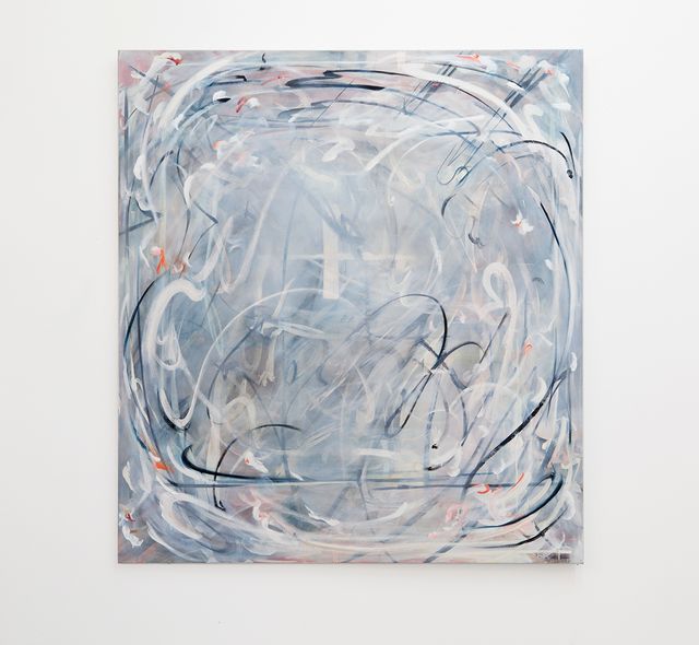 Abandoning the graphic and illustrative motifs of her previous work, these paintings mark a turn towards the most unfiltered manifestation of Burrough’s enduring interest in processing the world around her. Ultimately, Burrough’s blending of paint into semi-translucency and loading up of unconventional materials enable gestural and abstract marks to, for a moment, be registered as figurative – our own minds assigning certainty to the incidental.