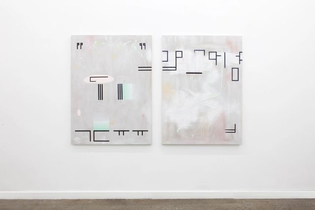 PACE is an aggregate series of reworked paintings that encapsulate a year of lockdown thinking and making. In these new works CrowEST’s preoccupation with visualising sound continues through gestural repetition, erasure and instructional lines that furnish the canvases. It is apparent that CrowEST has suspended clear notation to allow for mess and rough edges paired with sharp forms that reference the developing language of glyphs seen throughout her work. This series of paintings invite you in to relish the space, noise or silence of their marked and textured elds.
