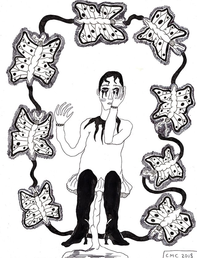 Fiction in art is a way of protecting yourself. Artistic licence: a simplified term for bending the rules and elaborating or neglecting details. Artists have the freedom to decide what to project and what to keep private. Art making is an emotional theatre of sorts, made to be looked at, performative, self-conscious. Here exists a duality of public display and private emotion, of performance and intimate feeling.