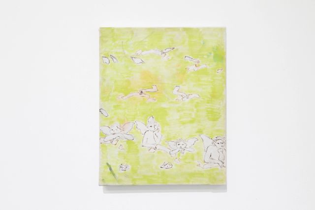This poetic and murky dyad draws attention to the fictional nature of the material surface. Painting covers, masks, and changes things, at once falling apart and becoming the more you look – it’s representational quality is tenuous. Peering through this lens, the exhibition aims to amplify the relationship between the push and pull of art making, and the anticipatory illusion of romantic idealism.